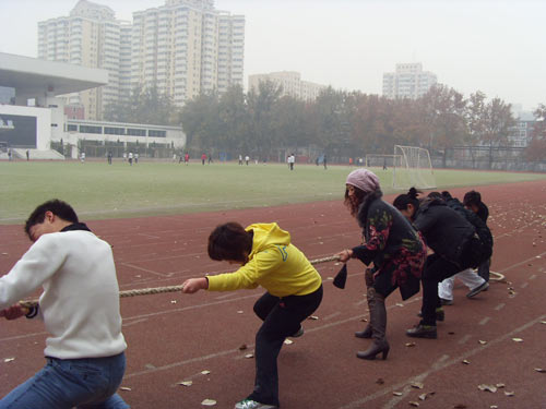 雖然樹木上已披上了薄薄的寒露,但仍難阻同學(xué)們的熱情。我們相聚在語言大學(xué)美麗的體育場,開始了此次趣味運(yùn)動會。哈哈,我們一起……