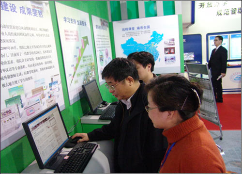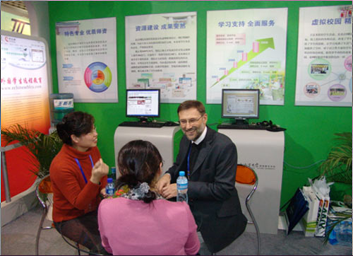 展會期間,我院工作組成員在本校展區(qū)接待來訪各級領(lǐng)導(dǎo)、兄弟院校代表團成員、現(xiàn)代遠程教育公共服務(wù)體系的相關(guān)工作人員和媒體記者,為大家演示平臺操作,展示精品課件,洽談項目合作。