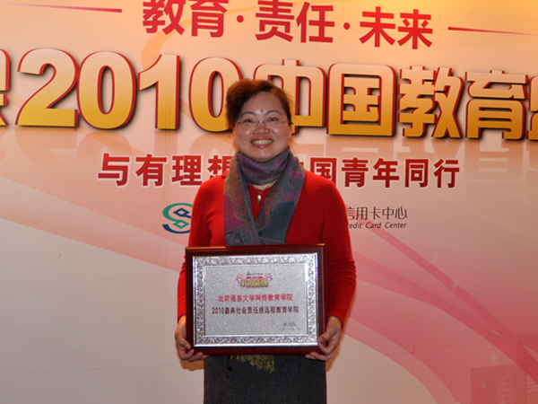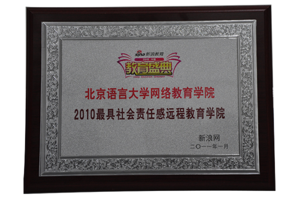 新浪網(wǎng)2010中國教育盛典頒獎典禮1月12日下午在北京隆重舉行,我院榮獲“2010最具社會責任感遠程教育學院”榮譽稱號。